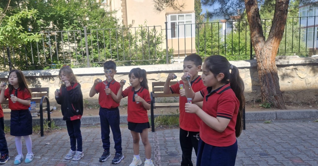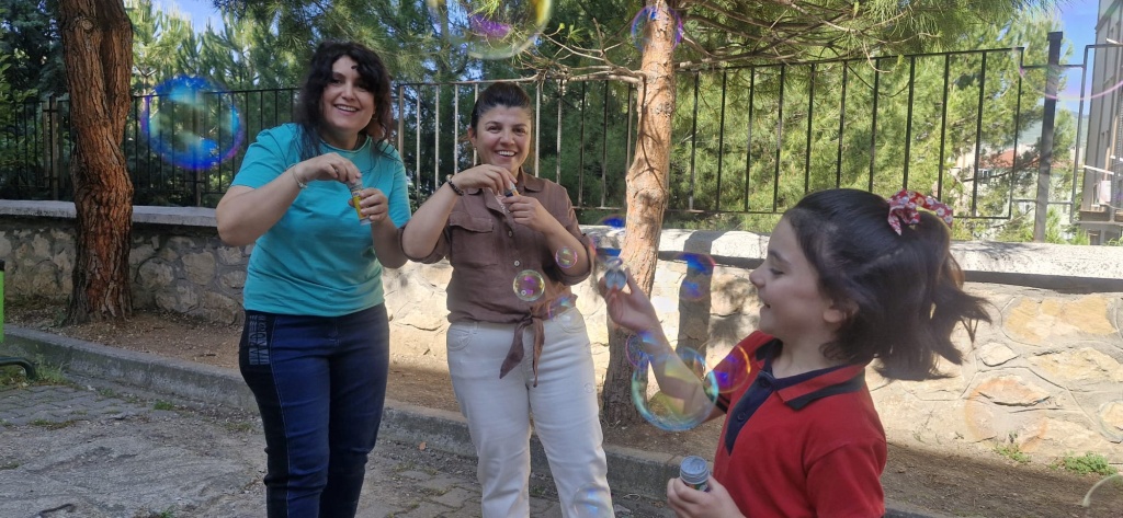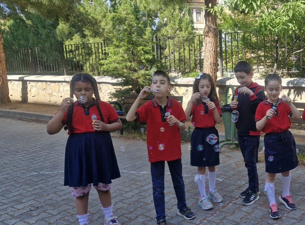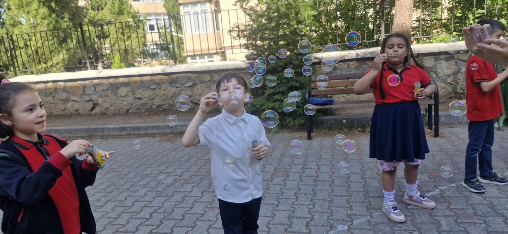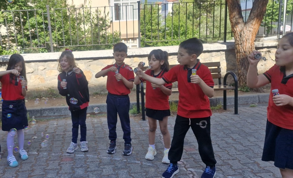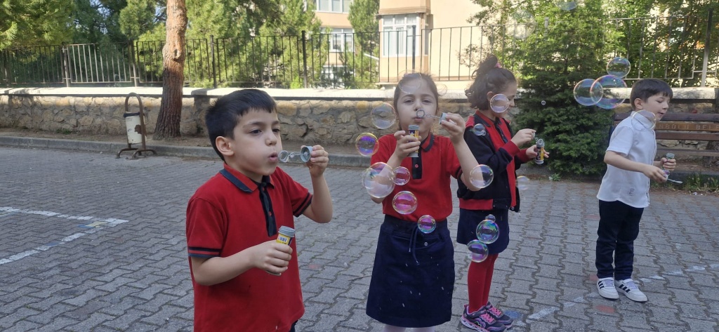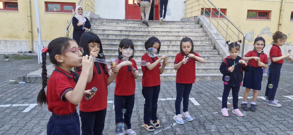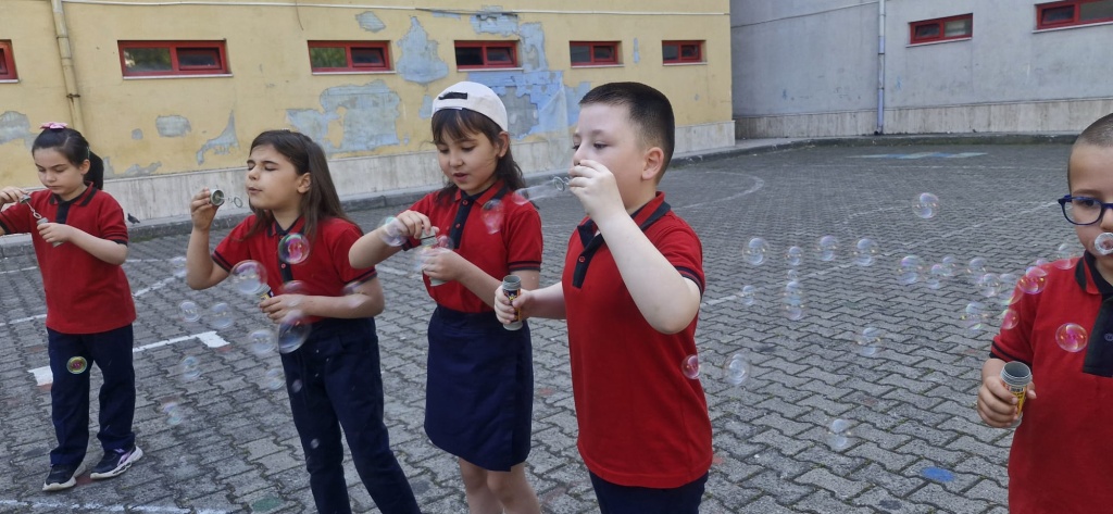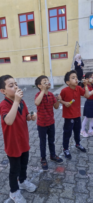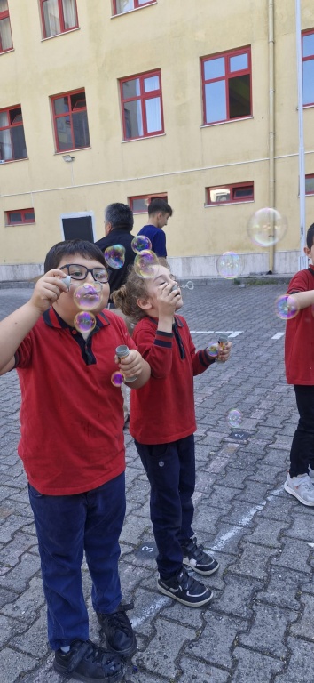 Öfke yönetiminde, problem çözümünde, kendimizi rahatlatmak istediğimizde kullanabileceğimiz bir yöntem olan nefes egzersizleri sınıfta uygulandıktan sonra, öğrencilerimiz ve öğretmenlerimiz köpük baloncukla çalışmayı eğlenerek okul bahçesinde tamamladılar.