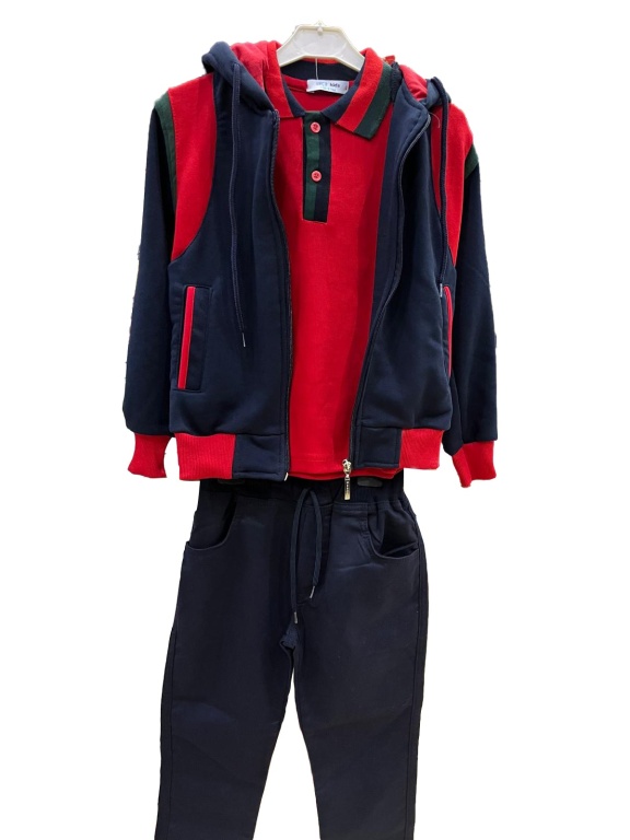 - Lacivert renkte kolda ve eteğinde kırmızı ribanalı mont